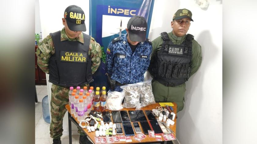 Un allanamiento por orden judicial contra la extorsión realizado en la Penitenciaría de Alta y Mediana Seguridad de Valledupar, conocida como ‘La Tramacúa’, dejó como resultado la incautación de 11 celulares, 13 sin card, 5 libras de marihuana, 1 kilo de cocaína, nueve litros de licor y 20 armas blancas.