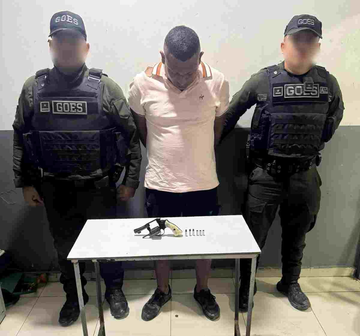 En otro extremo de la ciudad, en el sector La Arrocera, del barrio Olaya Herrera, fue capturado ‘el Jahir’, de 38 años de edad, quien portaba arma de fuego ilegal, tipo revólver, con seis cartuchos, la cual sería utilizada, presuntamente, para cometer hechos delictivos en esa zona de Cartagena.